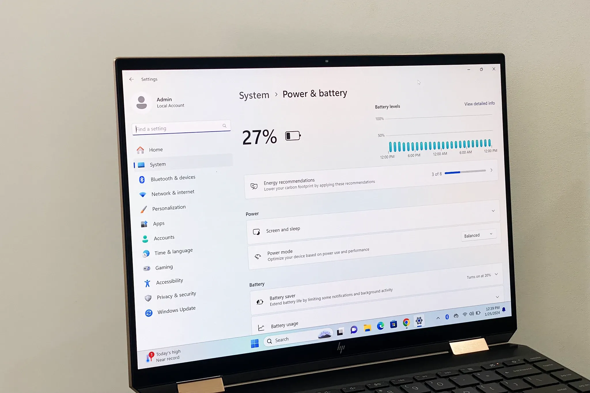 Hình ảnh minh họa một người dùng đang kiểm tra tình trạng pin laptop