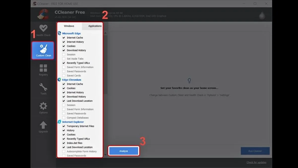 Giao diện phần mềm CCleaner dùng để quét và dọn dẹp tập tin rác trên hệ thống