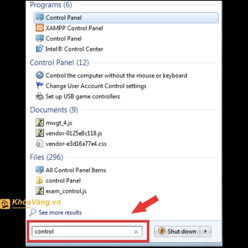 - Mở Control Panel (Dùng thanh tìm kiếm hoặc