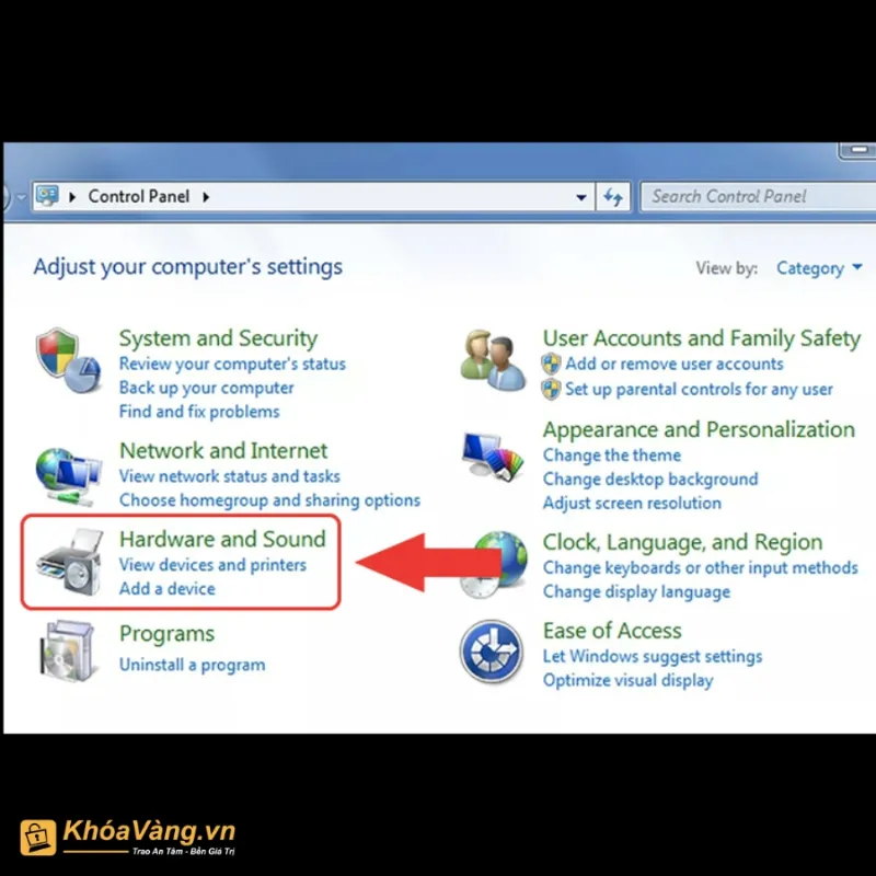 Cửa sổ Hardware and Sound để điều chỉnh cài đặt Mouse