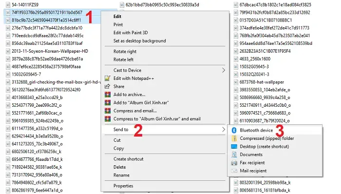 Tùy chọn Send to Bluetooth device trong menu chuột phảiTùy chọn Send to Bluetooth device trong menu chuột phải