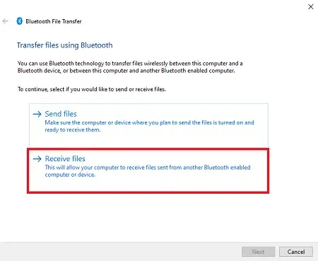 Chọn tính năng Receive files là cách nhận bluetooth trên laptopChọn tính năng Receive files là cách nhận bluetooth trên laptop