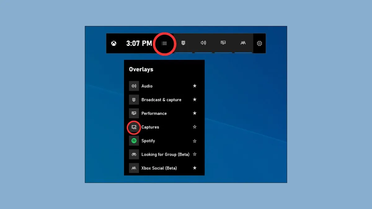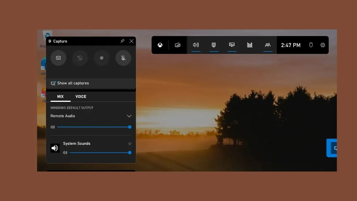 Trong giao diện Game Bar, bạn tìm đến cửa sổ có tiêu đề “Capture” hoặc biểu tượng máy ảnh/ghi hình. Đây là nơi chứa các tùy chọn quan trọng để kiểm soát quá trình ghi hình của bạn. Trong mục này, bạn có thể tùy chỉnh các thiết lập về âm thanh.