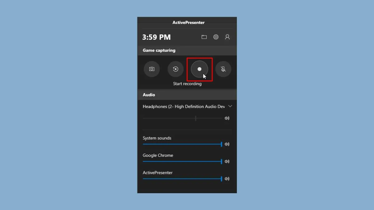 Nhấn biểu tượng Start Recording để bắt đầu cách quay màn hình laptop win 10Nhấn biểu tượng Start Recording để bắt đầu cách quay màn hình laptop win 10