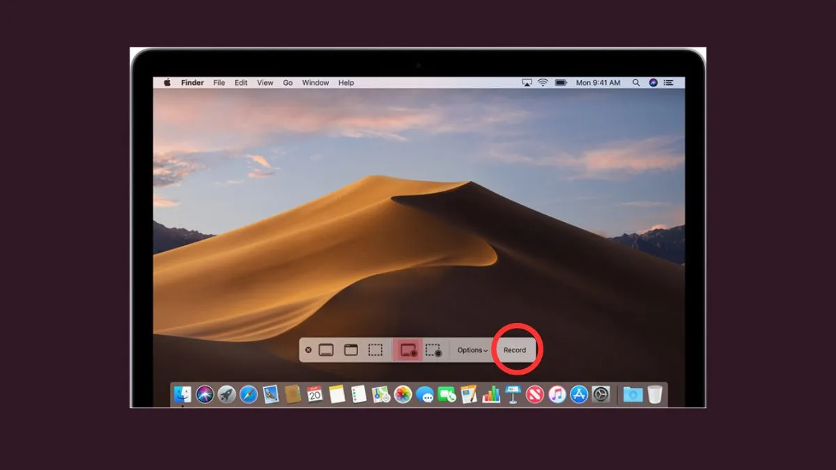Nhấn tổ hợp phím Shift + Command + 5 để mở menu tùy chọn quay trên macOSNhấn tổ hợp phím Shift + Command + 5 để mở menu tùy chọn quay trên macOS