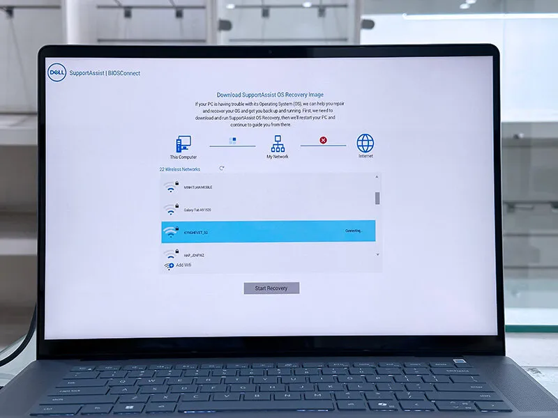 Một số thiết bị Dell mới hơn không lưu trữ toàn bộ gói khôi phục trên ổ cứng mà yêu cầu tải về. Đây là lúc người dùng cần kết nối Internet để hoàn tất quá trình khôi phục.