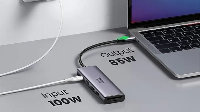 Docking Station (đế cắm) hoặc Hub USB-C đa năng không chỉ là bộ chia cổng kết nối. Chúng còn đóng vai trò là nguồn cấp điện cho laptop nếu được kết nối với một adapter PD bên ngoài.
