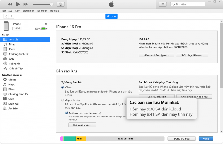 - Sao Lưu Lên Ổ Đĩa Cục Bộ (Local Backup)
