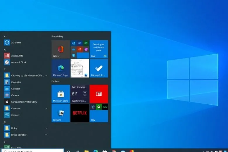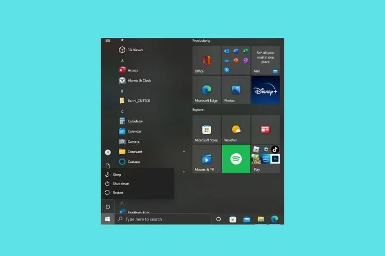 Hình ảnh menu Start trên Windows, minh họa thao tác tắt máy đúng cách khi sử dụng laptop
