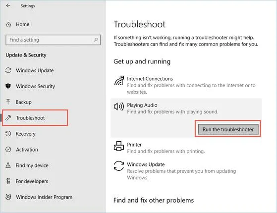 Công cụ này thường có thể sửa các vấn đề liên quan đến cấu hình loa mặc định. Nó cũng có khả năng phát hiện các dịch vụ âm thanh bị tắt. Việc chạy Troubleshooter là một bước nên được ưu tiên.