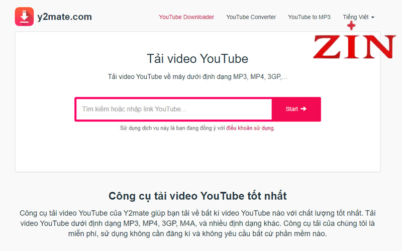 Giao diện trang web chuyển đổi video YouTube sang MP3 trực tuyến
