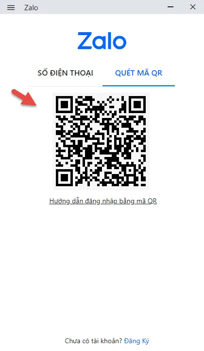 - Mở ứng dụng Zalo PC, chọn tab Đăng nhập bằng mã QR.