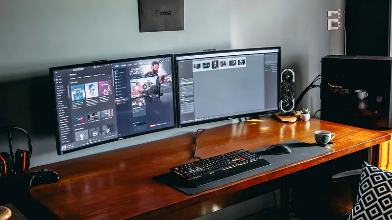 Một người dùng đang làm việc hiệu quả với hai màn hình hiển thị, minh họa cách tận dụng màn hình laptop cũ làm màn hình phụMột người dùng đang làm việc hiệu quả với hai màn hình hiển thị, minh họa cách tận dụng màn hình laptop cũ làm màn hình phụ