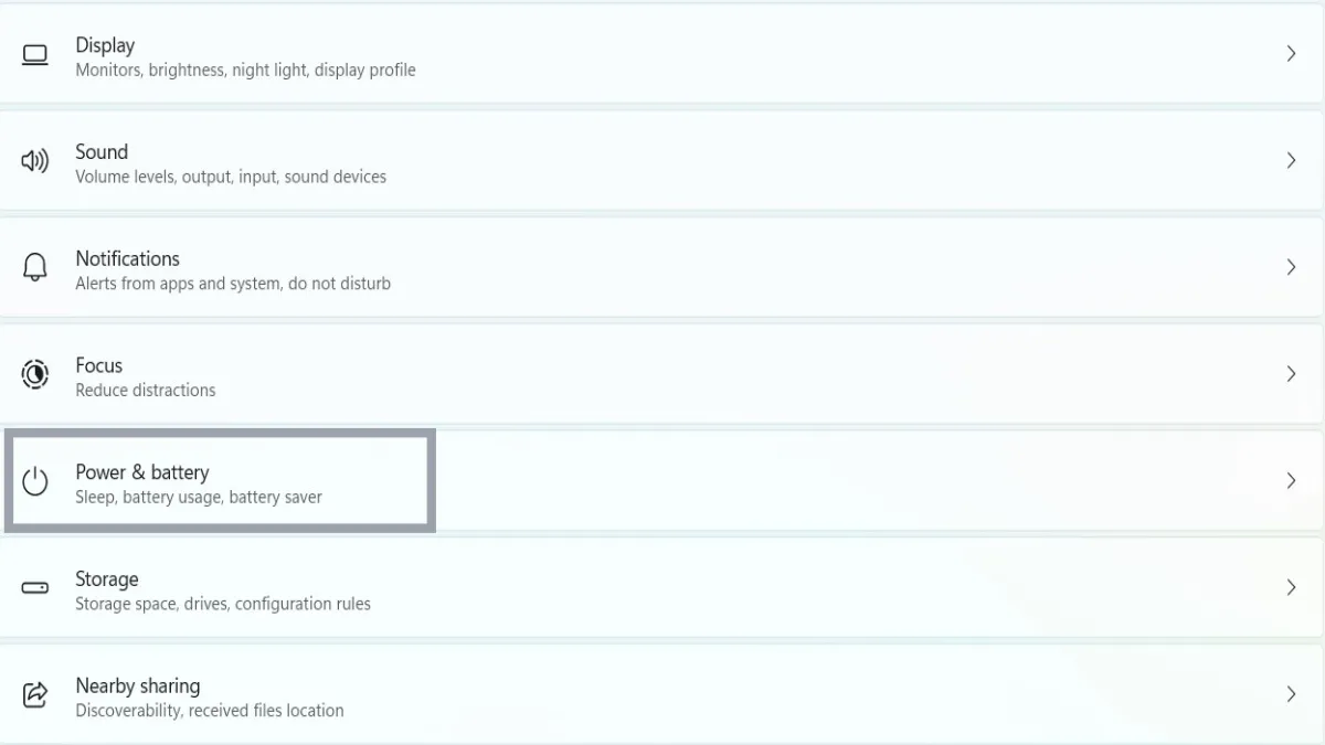 2. Truy cập Power & Battery: Trong menu bên trái, chọn Power & Battery.