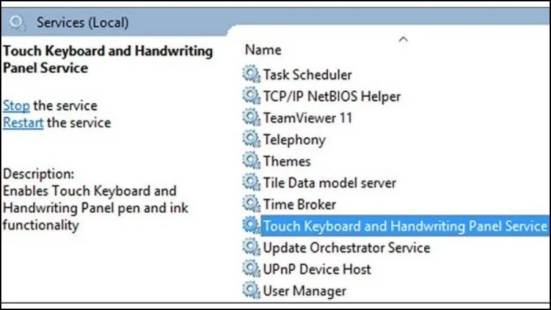 Tìm kiếm Touch Keyboard and Handwriting Panel Service trong Menu Services để tắt chuột cảm ứng