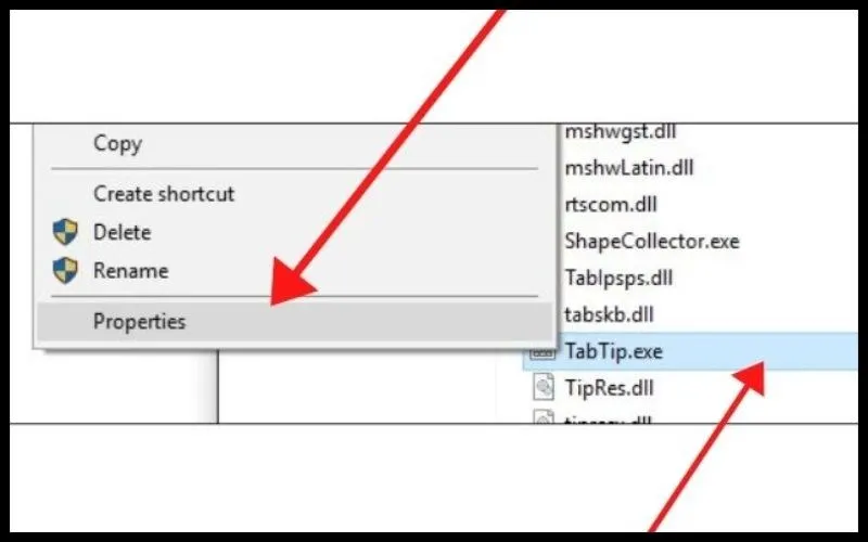 Tại thư mục này, người dùng cần tìm file TabTip.exe. Vì đây là file hệ thống, người dùng cần có quyền Administrator và thay đổi quyền sở hữu trước khi có thể đổi tên. Nhấp chuột phải vào file TabTip.exe và chọn Properties (Thuộc tính).