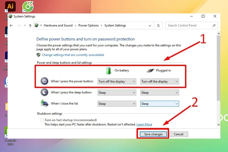 Sau khi hoàn thành việc điều chỉnh, nhấn “Save changes” (Lưu thay đổi) để áp dụng cấu hình mới. Từ thời điểm này, việc gập màn hình laptop sẽ chỉ đơn thuần là tắt hiển thị mà không làm gián đoạn các ứng dụng đang chạy nền. Đây là một phương pháp đơn giản nhưng cực kỳ hiệu quả.