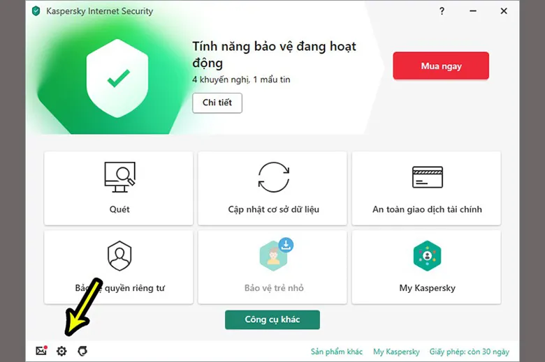 - Sau khi cài đặt và kích hoạt KIS, người dùng truy cập vào giao diện chính của phần mềm.