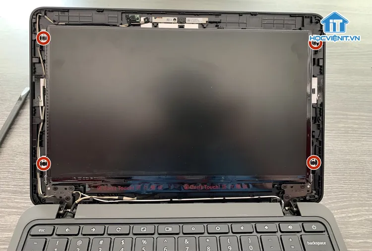 Tháo ốc cố định màn hình laptop Acer vào khung lắp đặt kim loạiTháo ốc cố định màn hình laptop Acer vào khung lắp đặt kim loại