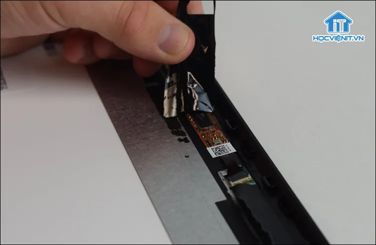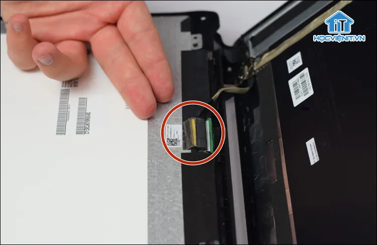 Mục tiêu của bước này là tiếp cận được cáp kết nối video, thường là cáp eDP (Embedded DisplayPort) hoặc LVDS (Low-Voltage Differential Signaling) ở mặt sau tấm nền. Các dòng HP hiện đại chủ yếu dùng eDP.