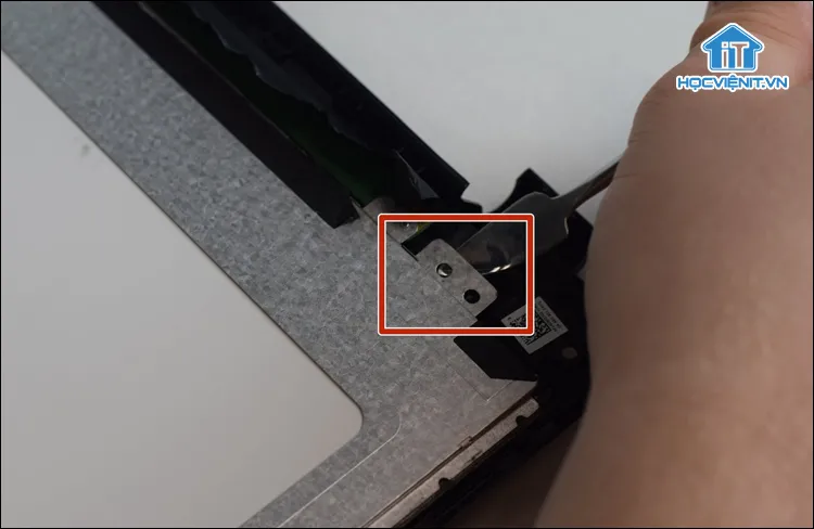Sau khi tháo khung viền, tấm nền màn hình LCD/LED sẽ được lộ ra. Tùy từng dòng máy, tấm nền có thể được cố định bằng các giá đỡ kim loại. Kỹ thuật viên cần tháo các ốc giữ giá đỡ này (nếu có), sau đó nhẹ nhàng đặt màn hình úp xuống bàn phím hoặc một bề mặt mềm, an toàn.