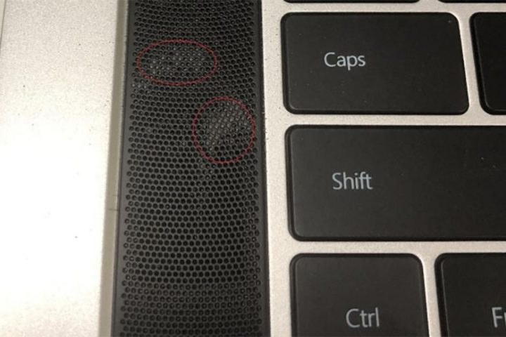Loa laptop được thiết kế với các lưới và khe hở rất nhỏ. Đây là nơi bụi bẩn, sợi vải và các hạt mịn dễ dàng lọt vào và tích tụ. Sự tắc nghẽn này tạo ra rào cản vật lý, làm giảm biên độ rung của màng loa. Kết quả là âm thanh phát ra bị nhỏ đi, méo tiếng hoặc xuất hiện hiện tượng rè khó chịu, gây gián đoạn nghiêm trọng khi sử dụng các ứng dụng truyền thông doanh nghiệp.