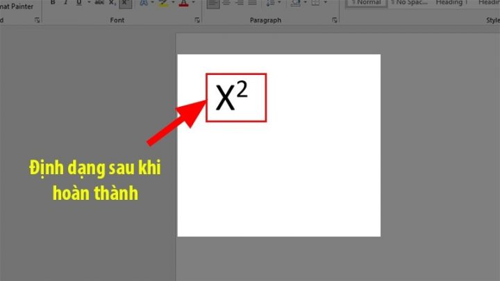 Trong nhóm “Font”, tìm và nhấp vào biểu tượng có hình X². Văn bản đã chọn sẽ ngay lập tức được biến đổi thành dạng số mũ. Kỹ thuật này hữu ích cho người mới làm quen với Word. Nó còn giúp xác định vị trí của các tùy chọn định dạng nâng cao một cách nhanh chóng.