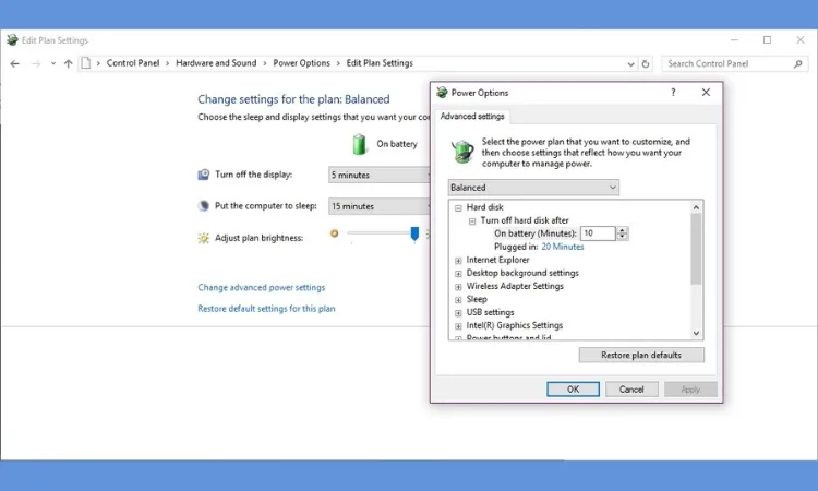 Sử dụng các công cụ Quản lý Pin của Nhà sản xuất