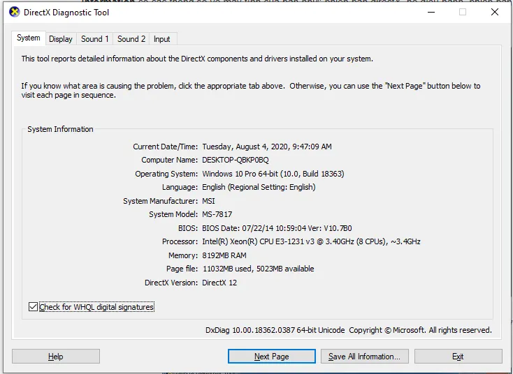 - Phương Pháp 4: Kiểm Tra Thông Số Cơ Bản Bằng DirectX Diagnostic Tool (dxdiag)