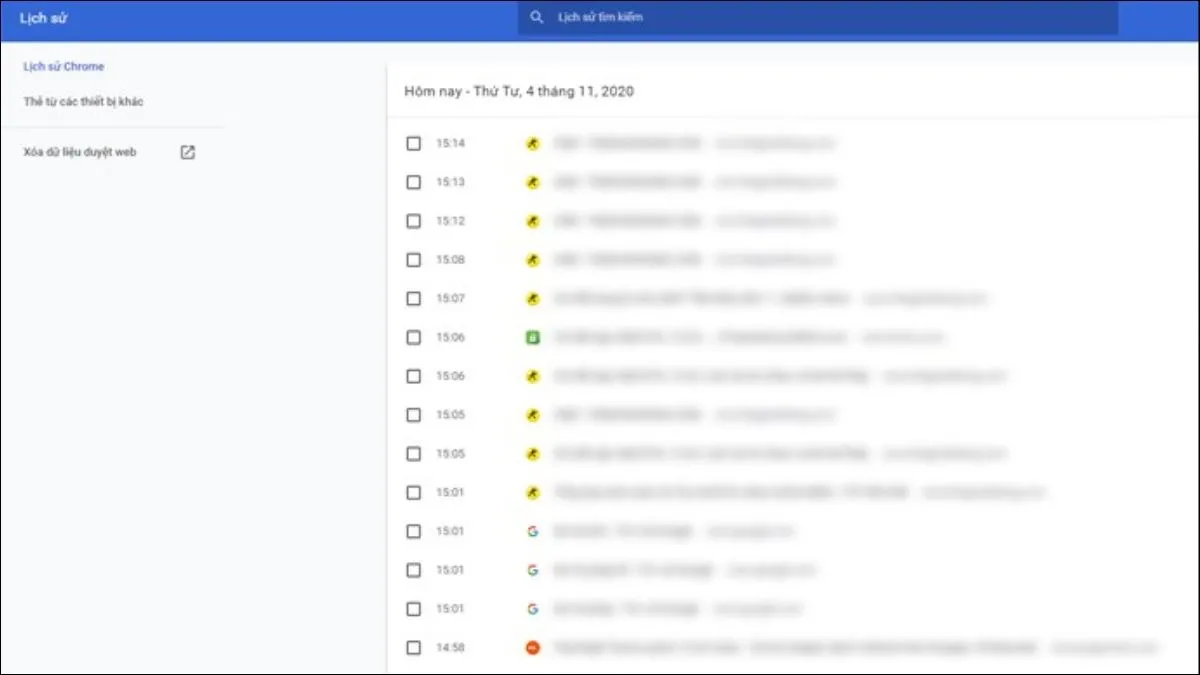 Giao diện cửa sổ Lịch sử Duyệt web trên trình duyệt Google Chrome