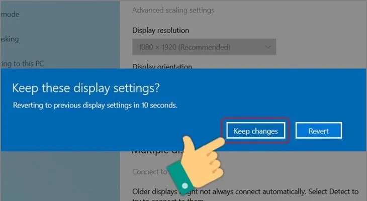 Bạn có khoảng 15 giây để nhấn Keep Changes nếu thấy chế độ xoay đã chính xác. Nếu không, màn hình sẽ tự động hoàn tác về trạng thái ban đầu để tránh trường hợp bạn không thể thao tác trên màn hình bị lộn ngược.