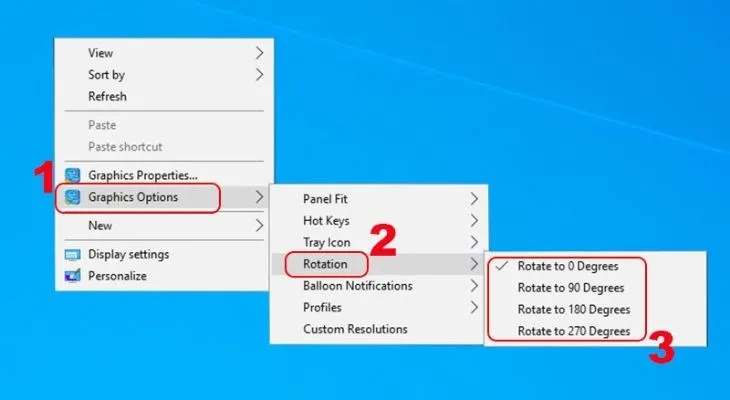 Các tổ hợp phím tắt được thiết lập để xoay màn hình 90 độ, 180 độ, và 270 độ, cũng như quay về chế độ mặc định. Ghi nhớ chúng sẽ tiết kiệm rất nhiều thời gian.